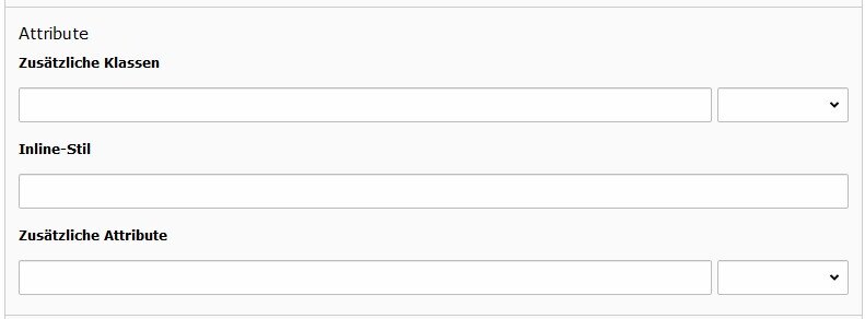 Inhaltselemente können über Attribute individuell gestaltet werden. Für Klassen und Attribute bestehen Definitionen, welche über das Auswahlmenü hinzugefügt werden können. Aus Sicherheitsgründen können nur Daten-Attribute zu den Attributen hinzugefügt werden.